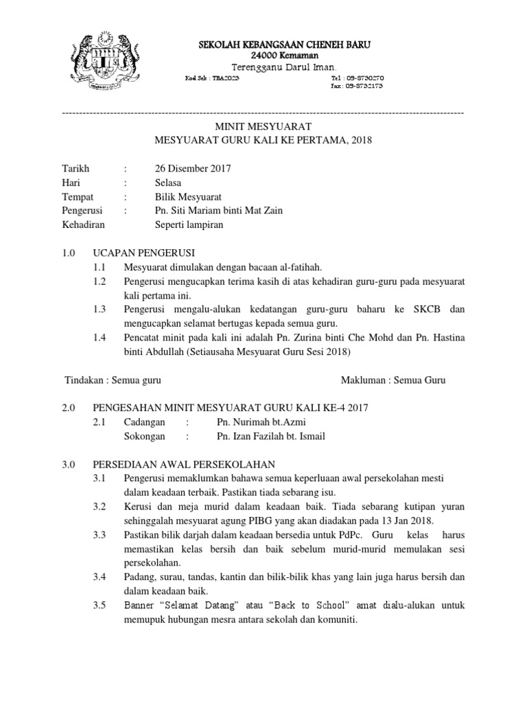 Minit mesyuarat panitia rbt kali pertama 2018. Minit mesyuarat panitia bahasa arab 2018. 8.4.2 semua murid diwajibkan membeli baju rumah sukan. Bilik gerakan smk jerantut kehadiran. Minit mesyuarat kurikulum kali pertama 2016 smk jerantut.